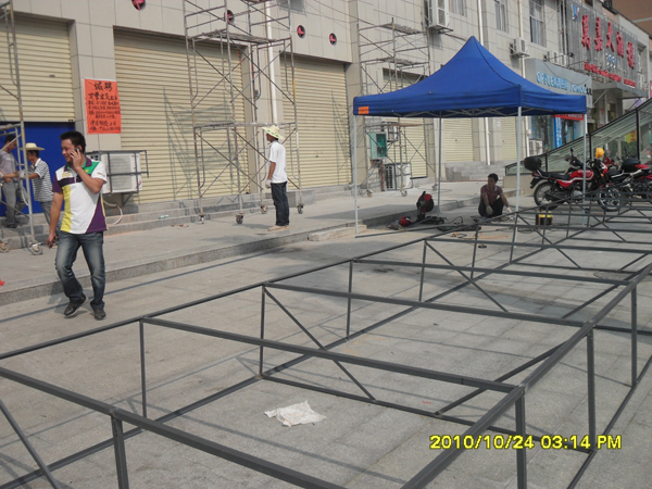 這么大的架子安裝上去真是少一個(gè)人都不得。